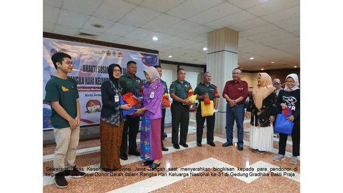 Bhakti Sosial Donor Darah dalam rangka Hari Keluarga Nasional ke-31 yang terpusat di Jawa Tengah. Kegiatan dilaksanakan di Gedung Gradhika Bakti Praja Kamis, 27 Juni 2024. Sasaran peserta donor adalah pegawai dilingkungan OPD Pemprov Jawa Tengah dan anggota TNI dati KODIM 0733 Kota Semarang. Tim Donor Darah dari UTDRS RS Moewardi Surakarta. Target sasaran yang mendonorkan darah sebanyak 150 kantong darah. Hadir dan memberikan sambutan dalam kegiatan Bapak Deputi Bidang Keluarga Berencana dan Kesehatan Reproduksi BKKBN RI DR. Drs. Wahidin. MKes