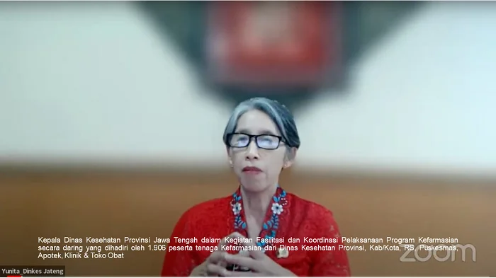 Dinas Kesehatan Provinsi Jawa Tengah hari Kamis, tanggal 22 Agustus 2024 melaksanakan kegiatan Fasilitasi dan Koordinasi Pelaksanaan Program Kefarmasian secara daring. Acara dibuka oleh Ibu Kepala Dinas Kesehatan (Ibu Yunita Dyah Suminar, SKM.,M.Sc,M.Si)