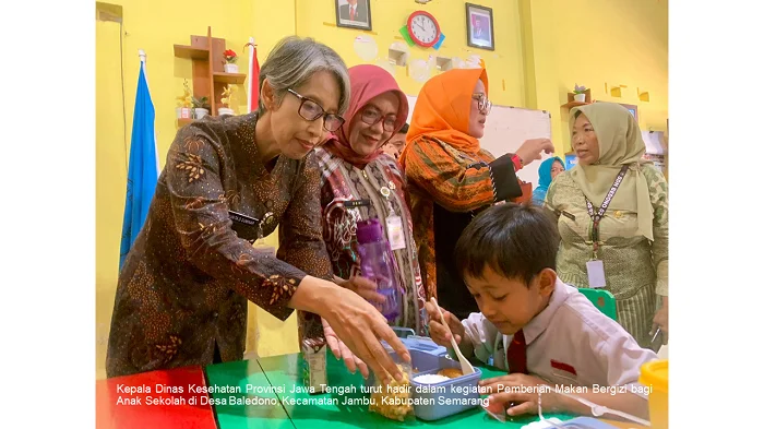 Kepala Dinas Kesehatan Provinsi Jawa Tengah turut hadir dalam kegiatan Pemberian Makan Bergizi bagi Anak Sekolah di Desa Baledono, Kecamatan Jambu, Kabupaten Semarang hari ini, Selasa 27 Agustus 2024. Acara ini diselenggarakan oleh Dinas Ketahanan Pangan Provinsi Jawa Tengah, dan turut dihadiri oleh Bapak Pj Gubernur Jawa Tengah, Komjen Pol (Purn) Drs. Nana Sudjana AS, MM.