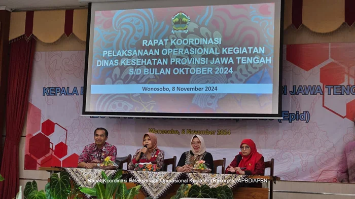 Pada hari Jumat, 8 November 2024 bertempat di Aula Bapelkes Provinsi Jawa Tengah Kampus Wonosobo, Dinas Kesehatan Provinsi Jawa Tengah melaksanakan Rapat Koordinasi Pelaksanaan Operasional Kegiatan (Rakorpok) APBD/APBN sampai dengan Oktober 2024. Kegiatan yang belum mencapai target perlu dilakukan langkah strategis percepatan pelaksanaan kegiatan dan pertanggungjawaban keuangan dimana waktu efektif triwulan IV tahun 2024 kurang dari 2 bulan untuk mencapai target yang telah ditetapkan. Kepala Dinas dalam sambutannya menekankan kerjasama lintas program dalam pelaksanaan kegiatan baik APBD maupun APBN untuk mendukung pencapaian indikator kinerja Dinas Kesehatan Provinsi Jawa Tengah.