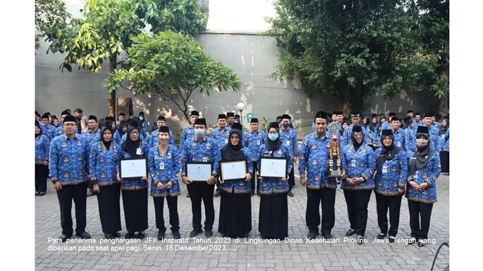 Sebagai rangkaian peringatan Hari Kesehatan Nasional ke 59, pada Apel Pagi ini Dinas Kesehatan Provinsi Jawa Tengah memberikan JFK Award kepada Pemangku Jabatan Fungsional Kesehatan Inspiratif. Penghargaan JFK Inspiratif 2023 diberikan kepada :