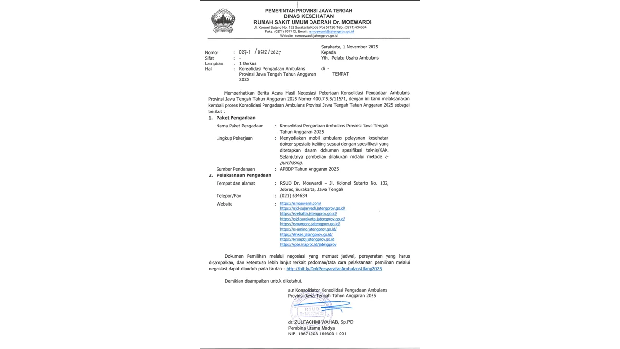 Selamat Hari Kesehatan Nasional ke 61 dari Gubernur Jawa Tengah, Ahmad Luthfi. Beliau berharap momentum HKN ini untuk semakin menguatkan komitmen bersama untuk mewujudkan masyarakat Jawa Tengah dan Indonesia yang sehat, produktif dan berdaya saing.